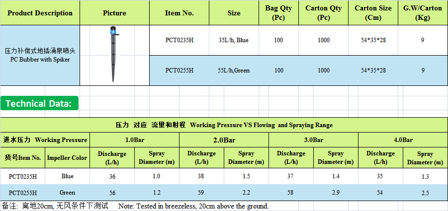 1. С большим диапазоном регулировки потока, хорошо подходит для орошения неровной местности.