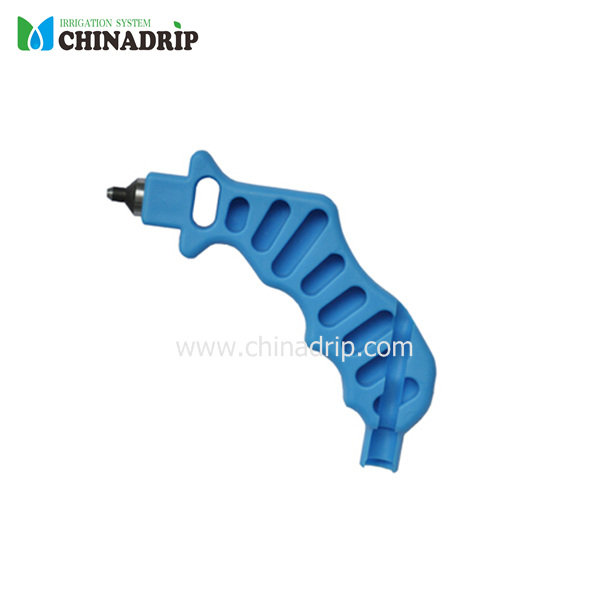 Чтобы использовать дырокол с ручкой, сначала вставьте в него полиэтиленовую трубку. Затем нажмите на ручку вниз, чтобы пробить отверстие.